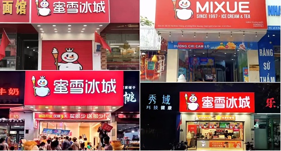 而庞大的加盟体系,巨大的商业版图,让蜜雪冰城的管理变得无比复杂。此前,蜜雪冰城尝试过5次门店迭代。结果品牌信息越加混乱,市面上同时存在着粉白红黄、千变万化的店招,门店传播难以形成形成合力。