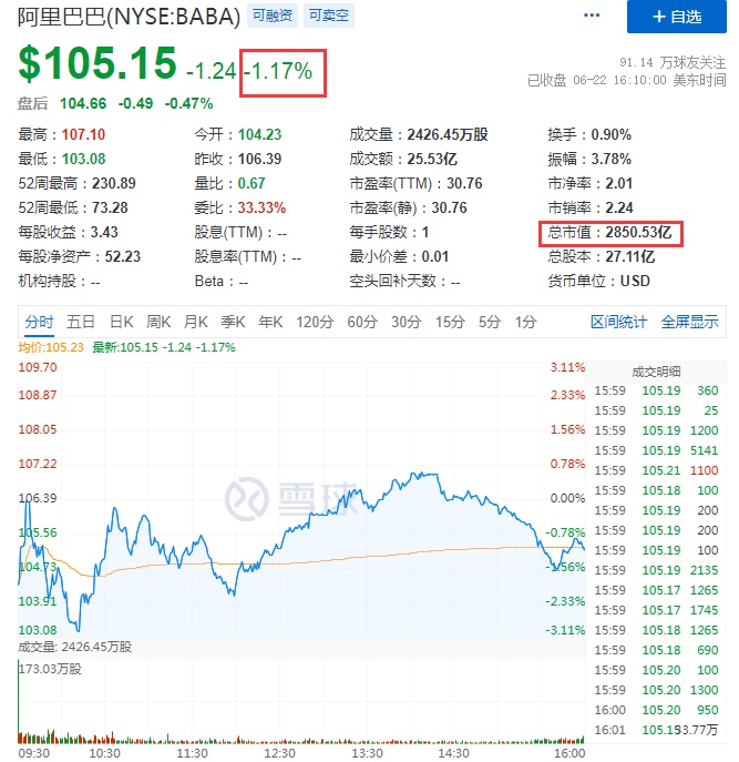 同时,每日优鲜跌超6%,百世集团跌近5%,拼多多、寺库跌超4%,拼多多报60.36美元,总市值763.18亿美元,京东跌超3%,报61.42美元,总市值959.23亿美元,阿里巴巴、携程、唯品会、BOSS直聘跌超1%,阿里巴巴报105.15美元,总市值2850.53亿美元,唯品会报10.63美元,总市值69.74亿美元。