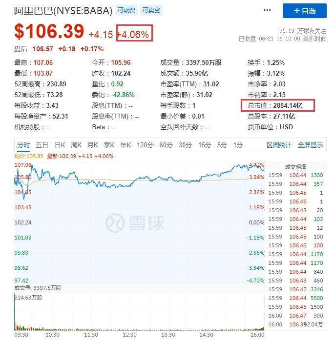 此前周二收盘,热门中概股普遍走高。其中,逸仙电商涨近20%,报0.9400美元,总市值5.94亿美元,每日优鲜涨超15%,趣店涨超11%,BOSS直聘、叮咚买菜涨超10%,携程、优信涨超8%,拼多多涨近7%,报63.05美元,总市值797.20亿美元,阿里巴巴、新氧、达达集团涨超4%,阿里巴巴报106.39美元,总市值2884.14亿美元,唯品会、蘑菇街、百世集团、途牛涨近2%,唯品会报10.75美元,总市值70.53亿美元。