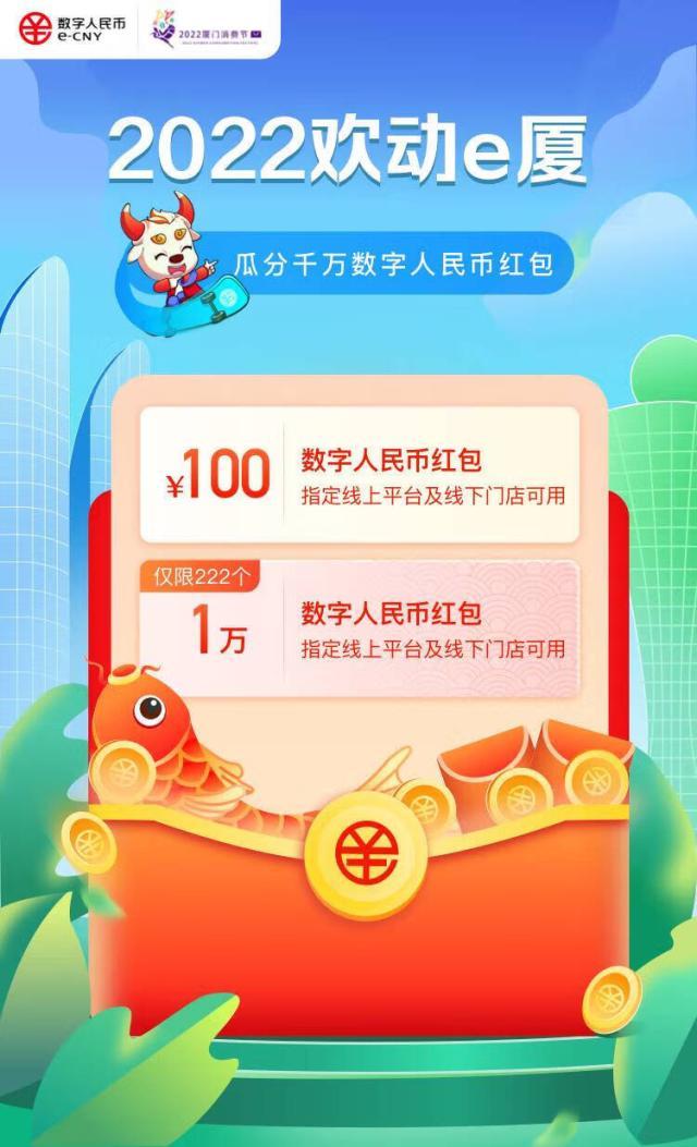 6月22日消息,据厦门日报消息,6月22日9点至6月24日24点前,在厦门的市民可通过京东App线上报名赢取厦门数字人民币红包,金额高达2022万元,最高可领10000元。