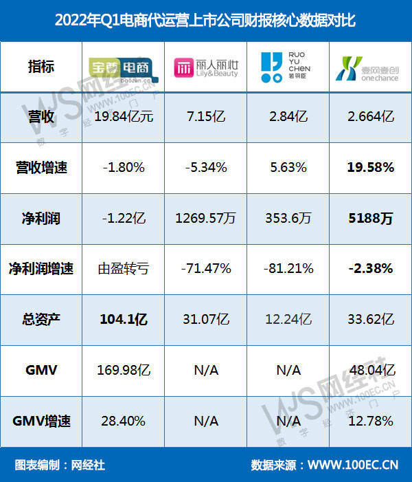 相比之下,作为同行的宝尊电商、丽人丽妆、壹网壹创、若羽臣等早就完成了上市。并且在前不久,它们相继公布了2022年第一季度的财报。