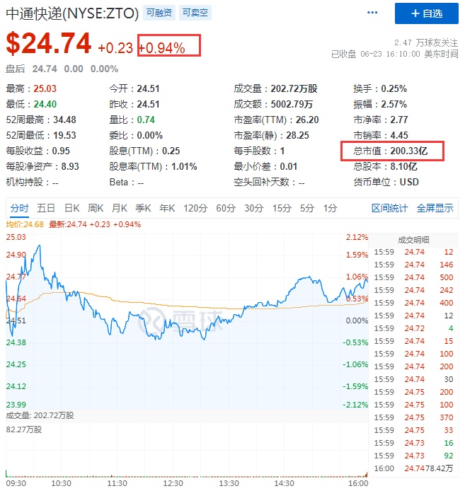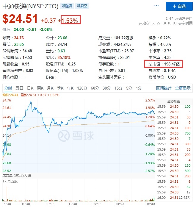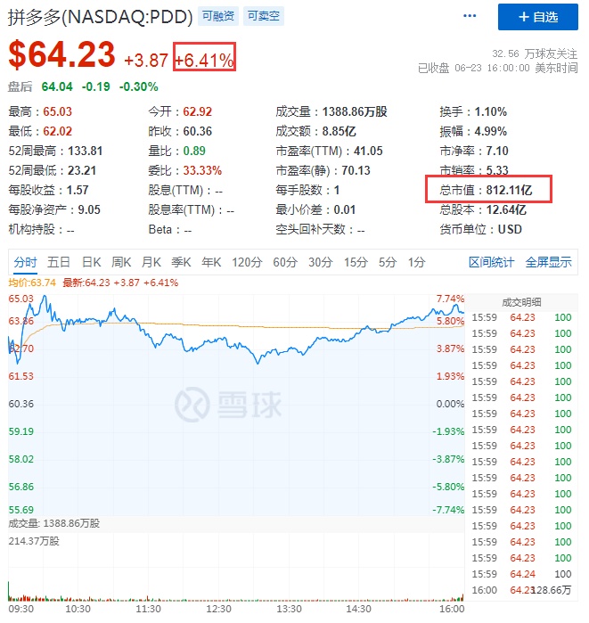 同时,每日优鲜跌超6%,百世集团跌近5%,拼多多、寺库跌超4%,拼多多报60.36美元,总市值763.18亿美元,京东跌超3%,报61.42美元,总市值959.23亿美元,阿里巴巴、携程、唯品会、BOSS直聘跌超1%,阿里巴巴报105.15美元,总市值2850.53亿美元,唯品会报10.63美元,总市值69.74亿美元。