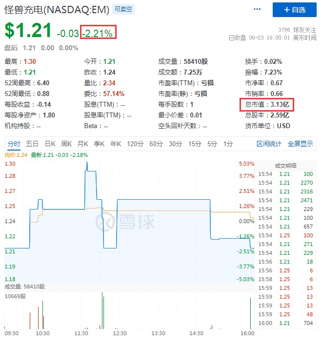 同时,万物新生跌超4%,洋葱集团、怪兽充电跌超2%,怪兽充电报1.21美元,总市值3.13亿美元。