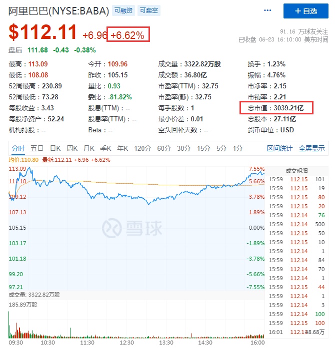 6月24日消息,热门中概股周四收盘大多走高。其中,1药网涨超11%,叮咚买菜涨超7%,阿里巴巴、拼多多、达达集团涨超6%,阿里巴巴报112.11美元,总市值3039.21亿美元,拼多多报64.23美元,总市值812.11亿美元,逸仙电商涨超5%,蘑菇街涨5%,BOSS直聘涨超4%,唯品会、每日优鲜、名创优品、百世集团、优信涨超3%,唯品会报11.00美元,总市值72.17亿美元,寺库涨超2%,中通涨近1%,报24.74美元,总市值200.33亿美元。