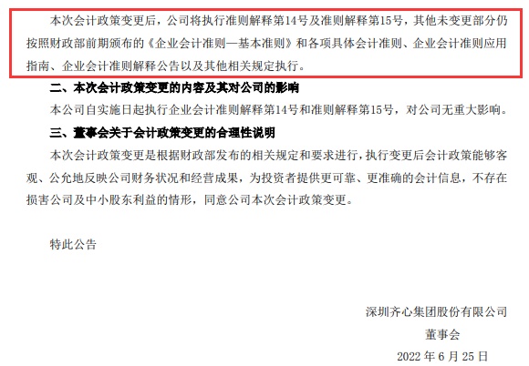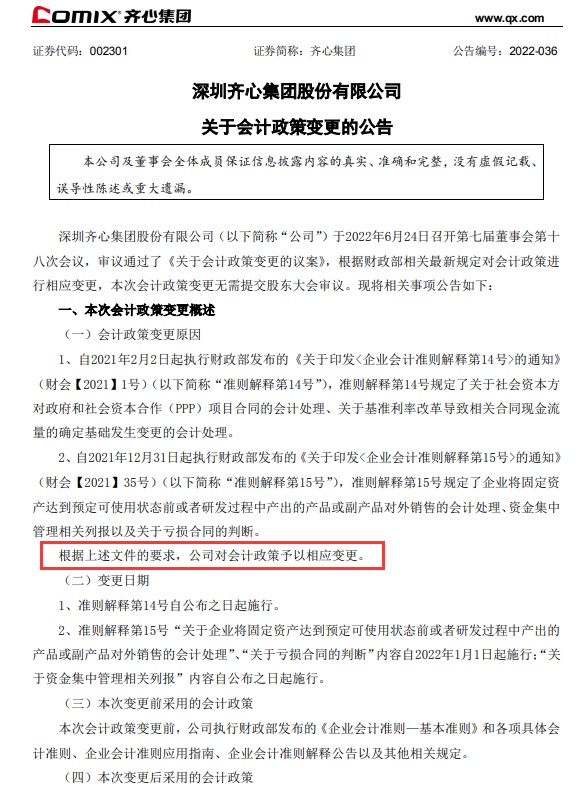 6月27日消息,深圳齐心集团股份有限公司(以下简称齐心集团或公司)近日发布关于会计政策变更的公告(以下简称公告)。