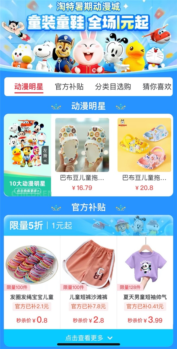 淘特联合30家品牌和工厂IP打造“暑期动漫城”