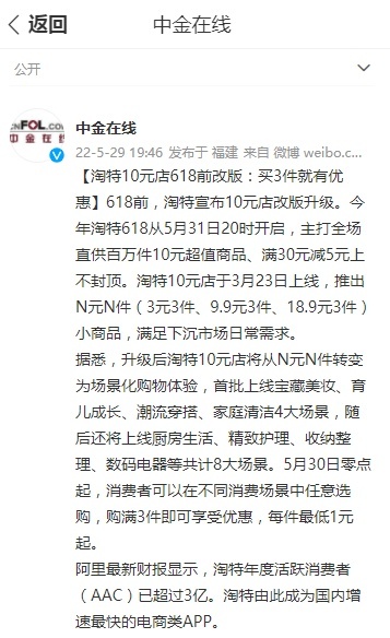 值得一提的是,今年618前夕,淘特宣布10元店改版升级。升级后的淘特10元店将从N元N件转变为场景化购物体验,首批上线宝藏美妆、育儿成长、潮流穿搭、家庭清洁4大场景,此后还将上线厨房生活、精致护理、收纳整理、数码电器等共计8大场景。