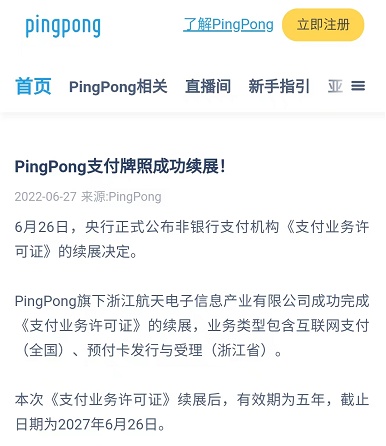 PingPong支付牌照成功续展