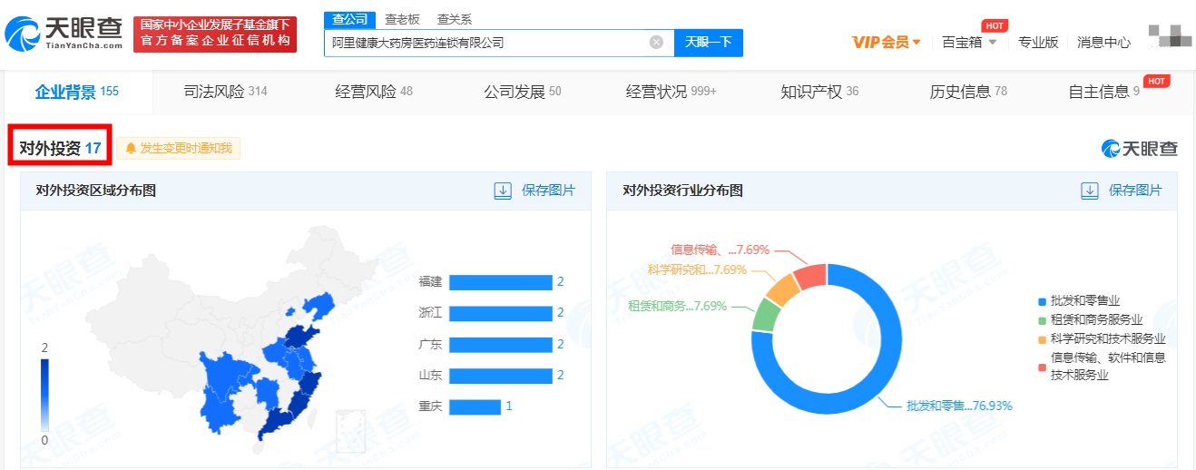 阿里健康大药房注册资本增至17.9亿 增幅约124%