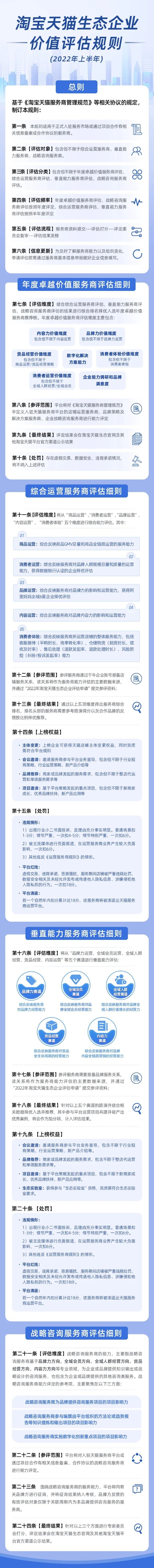 值得一提的是,为满足商家品牌在企业经营中的不同场景和不同层次需求,淘宝天猫不断引入更多生态角色进入到长期价值伙伴体系中。为更好引领生态伙伴体系的方向,规范生态伙伴管理,淘宝天猫特制定了2022年上半年生态企业价值评估规则。