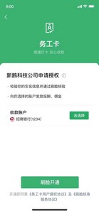据了解,务工卡现在已经具备线上签约、工时打卡、灵活结算、务工保障等多项能力,灵活就业者使用务工卡还可获得由微信支付送上的“务工关怀保障”,在使用期间如果遇到一些小意外,可以领取一次性保障关怀金。
