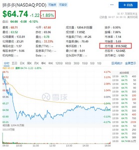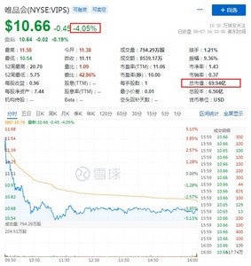 同时,唯品会跌近4%,报10.66美元,总市值69.94亿美元,万物新生跌近3%,新氧、达达集团、中通跌超2%,拼多多跌近2%,报64.74美元,总市值818.56亿美元。
