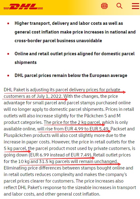 DHL表示,公司的国际包裹业务在维持价格稳定6年之后,也计划对部分来自德国的跨境包裹和小包货件进行价格调整。据了解,过去1年来,由于成本不断上涨,联邦快递和联合包裹都上调了包裹递送价格,预计未来还有更多包裹递送巨头也将加入涨价队伍。