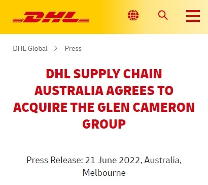 值得一提的是,近日DHL Supply Chain正在收购Glen Cameron Group的100%股权,后者是一家专门从事公路货运和合同物流的澳大利亚物流公司。Glen Cameron Group拥有一支由1000辆卡车和拖车组成的车队,在澳大利亚拥有820多名员工。