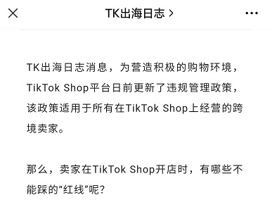 6月29日消息,为营造积极的购物环境,TikTok Shop平台近日更新了违规管理政策,该政策适用于所有在TikTok Shop上经营的跨境卖家。