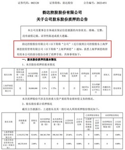 6月30日消息,韵达控股股份有限公司(以下简称韵达股份或公司)日前发布关于公司股东股份质押的公告(以下简称公告)。