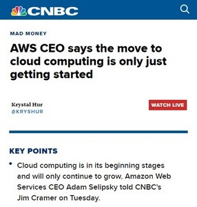 值得一提的是,亚马逊AWS主管Adam Selipsky近日表示,云计算还处于起步阶段,将来只会继续增长。