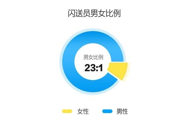 《报告》显示,2021年闪送员增长人数较多,全年净增长50万人,同比增长50%,截至2021年底,闪送员数量已超150万人。其中,闪送员男女比例为23:1,而2020年为20:1。