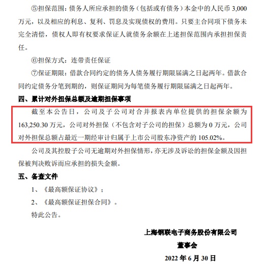 上海钢联 公司及子公司对合并报表内单位提供担保余额为16.325亿元