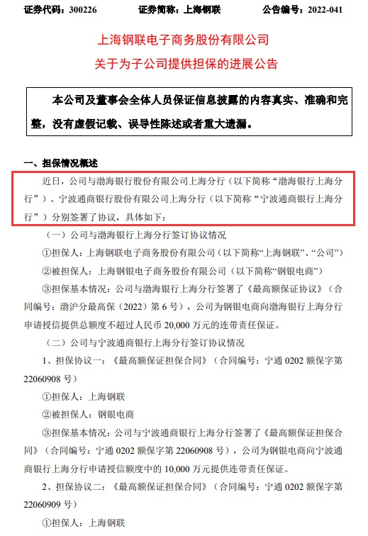 7月1日消息,上海钢联电子商务股份有限公司(以下简称上海钢联或公司)日前发布关于为子公司提供担保的进展公告(以下简称公告)。
