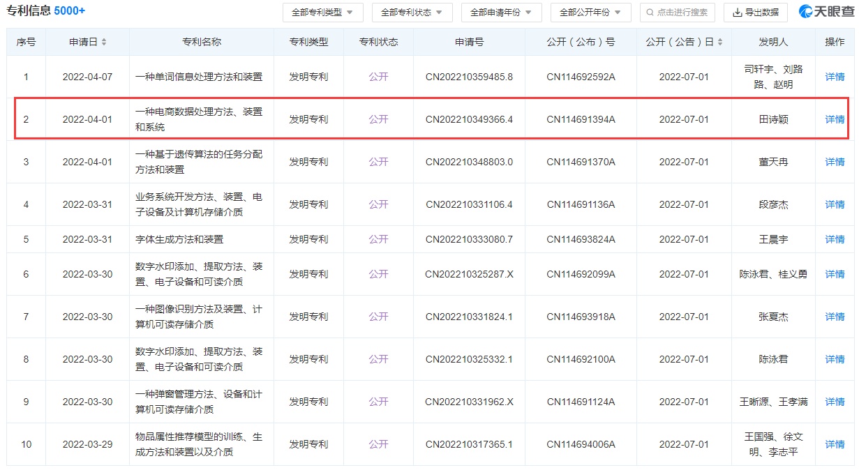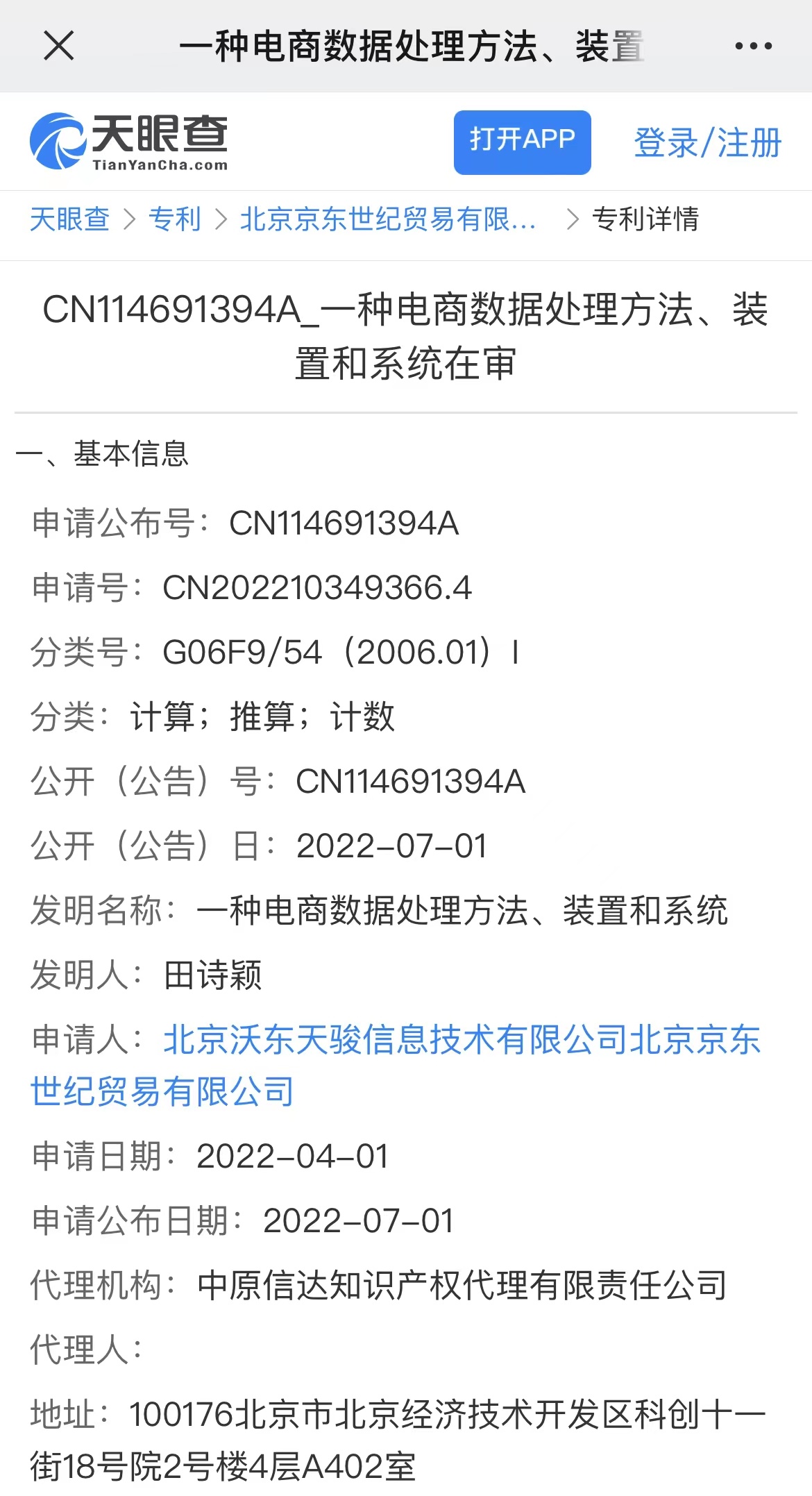 7月1日消息,天眼查资料显示,京东关联公司北京京东世纪贸易有限公司7月1日公开一项“一种电商数据处理方法、装置和系统”专利,申请公布号为CN114691394A,申请日期为2022年4月1日。