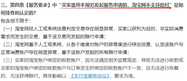 主要变更点:新增《淘宝网“货不对板包赔”服务规范》,规定了卖家准入/退出要求、服务要求以及消费者服务申请条件和举证要求等。