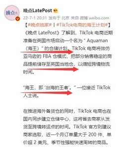 TikTok电商近期准备在英国市场启动一个名为“Aquaman(海王)”的仓储计划。“海王,即‘出海的王者’。”一位接近TikTok人士说。