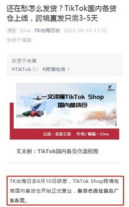 7月1日消息,据《晚点 LatePost》独家消息,TikTok电商将效仿亚马逊的FBA仓模式,把部分销售稳定的商品提前储存至英国当地仓,以缩短跨境物流时间。