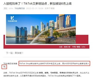 TikTok Shop已于4月25日正式上线泰国、越南、马来西亚、菲律宾的跨境电商业务,加上最近上线的新加坡本土店,以及最早开通的印尼站和英国站,TikTok Shop的电商业务已经登陆了7个国家。