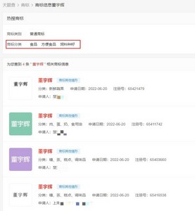 值得一提的是,天眼查信息显示,“董宇辉”商标被上海一公司和某自然人抢注,申请注册时间为2022年6月20日,商标分类含食品、方便食品和饲料种籽。当前商标进度为:注册申请中。
