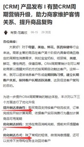 7月1日消息,有赞为进一步提升CRM(客户关系管理)周期营销的触达体验,对以下三个方面进行了优化升级:
