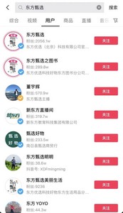 目前在抖音上搜索“东方甄选”不难发现,除了“东方甄选”外,公司还注册了“东方甄选之个护美妆”“东方甄选自营产品”“东方甄选之图书”“东方甄选美丽生活”。