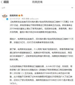 据统计,电商新政实施首月,深圳海关累计验放网购保税进口清单111万票,货值近3亿元,约65万名消费者享受税收优惠。