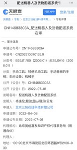 7月2日消息,天眼查资料显示,美团关联公司北京三快在线科技有限公司7月1日公开一项“配送机器人及货物配送系统”专利,申请公布号为CN114683303A,申请日期为2022年4月8日。