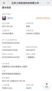 天眼查资料显示,北京三快在线科技有限公司成立于2011年5月,注册资本413166万美元,法定代表人为穆荣均,公司经营范围包括计算机软件技术、网络技术开发;技术转让、技术服务、技术咨询;计算机系统集成;企业营销策划;经济贸易咨询;销售自行开发的软件产品;批发计算机硬件及其配套设备;基础软件服务;应用软件服务;设计、制作、代理、发布广告;供应链管理。