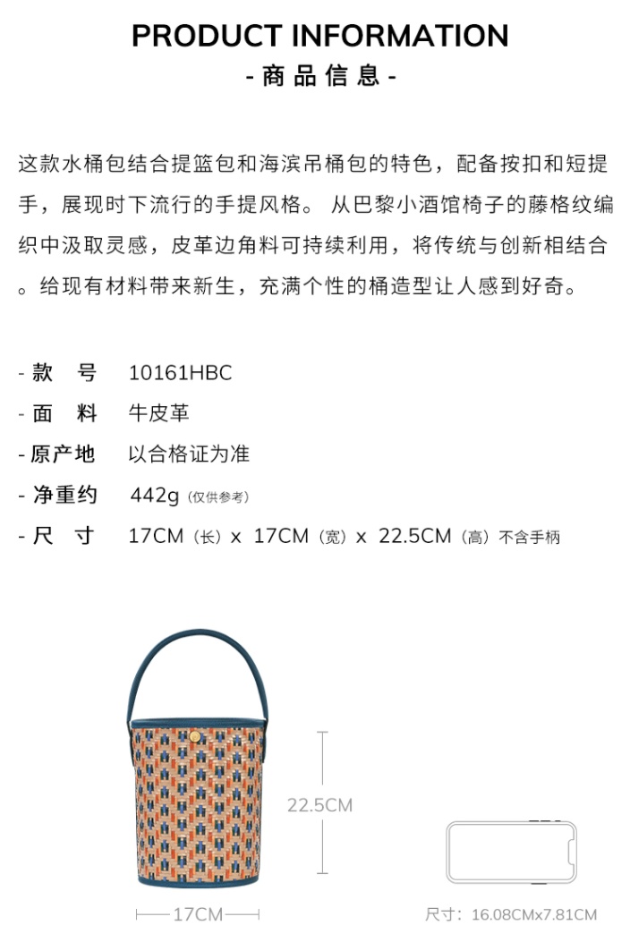 Épure系列中的pure Bistrot水桶包是2022秋冬款,主打编织皮革主题,组合六种不同颜色。这款水桶包皮革可持续利用,践行了Longchamp珑骧环保时尚的品牌理念。