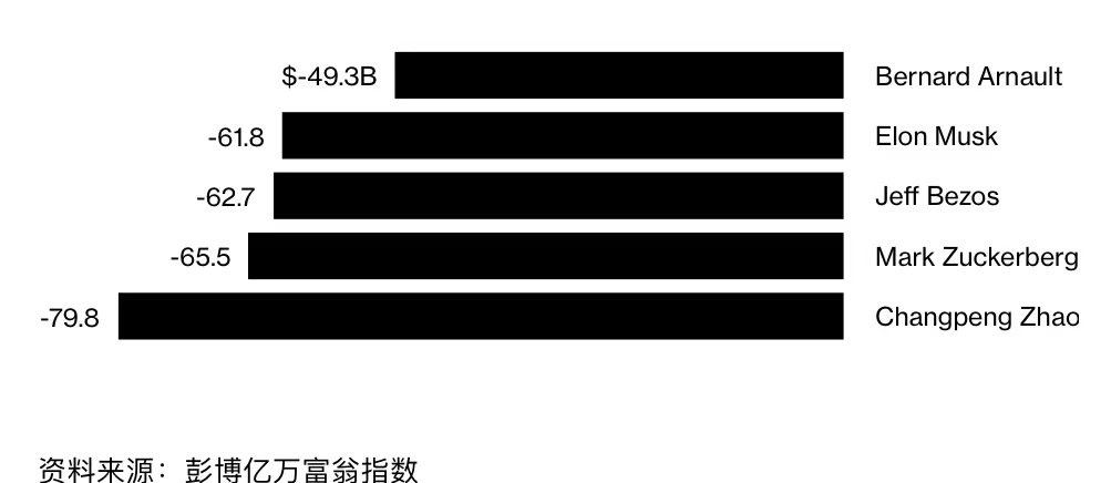 其中,埃隆·马斯克的财富缩水近620亿美元,杰夫·贝索斯缩水约630亿,马克·扎克伯格的净资产则减少了一半以上。