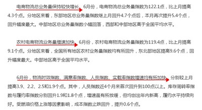 具体来看,6月份,电商物流总业务量指数为122.1点,比上月提高4.3个点。分地区来看,东部地区总业务量指数继上月回升4.7个点后,本月再次提升5.4个点,回升幅度最大。中部地区总业务量指数小幅回落,西部和中部地区高于全国平均水平。