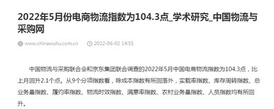 7月4日消息,近日,中国物流与采购联合会和京东集团联合调查的2022年6月中国电商物流指数公布。数据显示,2022年6月中国电商物流指数为107.1点,比上月回升2.8个点。从9个分项指数看,成本指数、实载率指数、库存周转指数、总业务量指数、履约率指数、物流时效指数、满意率指数、农村业务量指数、人员指数均有所回升。