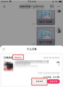 当买家在分销主播的客服界面点击分销订单的“联系商家”按钮或系统提示消息中的“商家客服”,将进入货主客服的聊天页面,同时将该分销订单的订单卡片推送给货主客服。