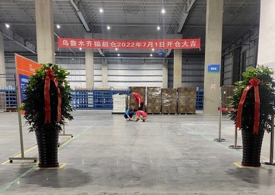 天猫超市新疆城市仓占地约2万多平方米,服务范围覆盖全疆,日均发货量可达2万多单,目前仓内商品以日用百货为主,已有超过3万种纸巾、粮油米面等各类生活用品入仓。