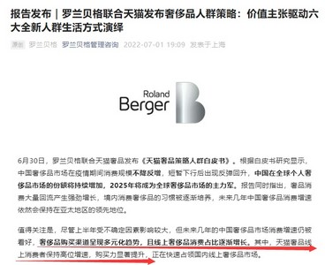 7月3日消息,近日,全球知名战略咨询公司罗兰贝格发布的《天猫奢品策略人群白皮书》显示,中国奢侈品市场在疫情期间消费规模不降反增,短暂下行后出现反弹回升,中国在全球个人奢侈品市场的份额将持续增加,2025年将成为全球奢侈品市场的主力军。