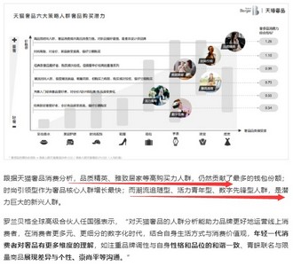 报告指出,品质精英、雅致居家、活力青年、时尚引领、潮流追随、数字先锋成为天猫奢品六大策略人群。