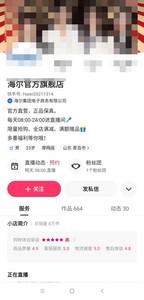 比如在粉丝数量上与快品牌的对比,快手电商头部快品牌粉丝通常能达到千万量级,而入驻的大品牌能有百万粉丝都算不错了,平台大家电排名第一的海尔,从去年试水品牌自播,现在只积累了五十多万粉丝。