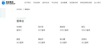 该次调整后,蚂蚁集团董事会包含2名执行董事,分别为井贤栋(董事长)、倪行军(执行董事);2名非执行董事/股东代表董事,分别为蔡崇信、程立;4名独立董事,分别为郝荃、黄益平、杨小蕾、史美伦。