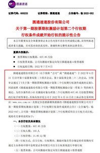 7月5日消息,圆通速递股份有限公司(以下简称圆通速递或公司)今日发布关于第一期股票期权激励计划第二个行权期行权条件成就开始行权的提示性公告(以下简称公告)。