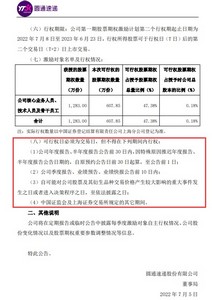 公告显示,行权数量为607.85万份,行权人数145人,行权价格11.85元/股,行权方式为自主行权。行权期内,激励对象在符合规定的有效期内可通过主办券商中国中金财富证券有限公司自主行权系统进行申报行权。股票来源公司向激励对象定向发行圆通速递A股普通股。