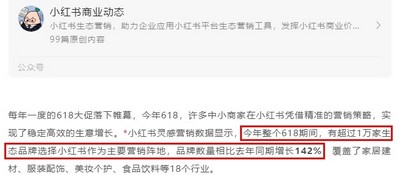 值得一提的是,此前,小红书灵感营销数据显示,今年整个618期间,有超过1万家生态品牌选择小红书作为主要营销阵地,品牌数量相比去年同期增长142%,覆盖了家居建材、服装配饰、美妆个护、食品饮料等18个行业。