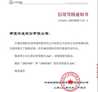 值得一提的是,6月24日晚间,申通快递股份有限公司(以下简称“申通快递”或“公司”)发布了公司债2022年度跟踪评级报告。报告显示,中诚信国际信用评级有限责任公司对公司及公司存续期内相关债项进行了跟踪评级,经中诚信国际信用评级委员会审定:维持公司主体信用等级为AA+,评级展望为稳定;维持“20STO01”和“20STO02”的信用等级为AA+。