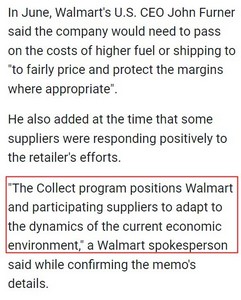 沃尔玛发言人在确认备忘录的细节时说表示,“Collect 计划使沃尔玛和参与的供应商能够适应当前经济环境的动态。”